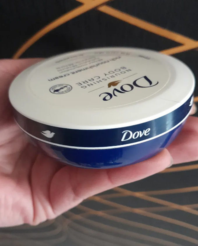Step 1: Dove Rich Nourishment Body Cream is best used after a bath or shower, morning or night (or both).